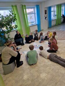 🎵 Muusikalised mõistatused: Kuulati erinevaid helisid ja muusikapalu. Vastuseid pidi hiljem otsima lõbusast sõnarägastikust, mis nõudis nii head mälu kui ka tähelepanelikkust.